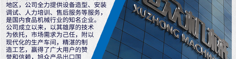廣州旭眾食品機(jī)械有限公司是一家集科研開發(fā),生產(chǎn)設(shè)計(jì),營銷服務(wù)為一體的現(xiàn)代化生產(chǎn)企業(yè)。現(xiàn)代化生產(chǎn)車間,精湛制造技術(shù),所產(chǎn)機(jī)械歷經(jīng)市場(chǎng)重重考驗(yàn),不斷贏得海內(nèi)外客戶的贊譽(yù)。