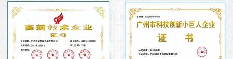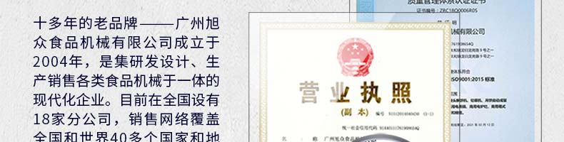 廣州旭眾食品機械有限公司是一家集科研開發,生產設計,營銷服務為一體的現代化生產企業。現代化生產車間,精湛制造技術,所產機械歷經市場重重考驗,不斷贏得海內外客戶的贊譽。