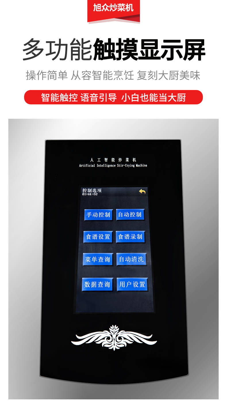 XZ-30TCP臺式300智能電磁炒菜機(觸屏+噴料),可以實現自動化烹飪過程的智能化設備,語音播報、自動噴料、旋轉翻炒、快速出菜。實現自動化烹飪,新一代微電腦操控智能烹飪設備、顛覆傳統炒菜模式。5000W猛火爆炒美食更鮮香