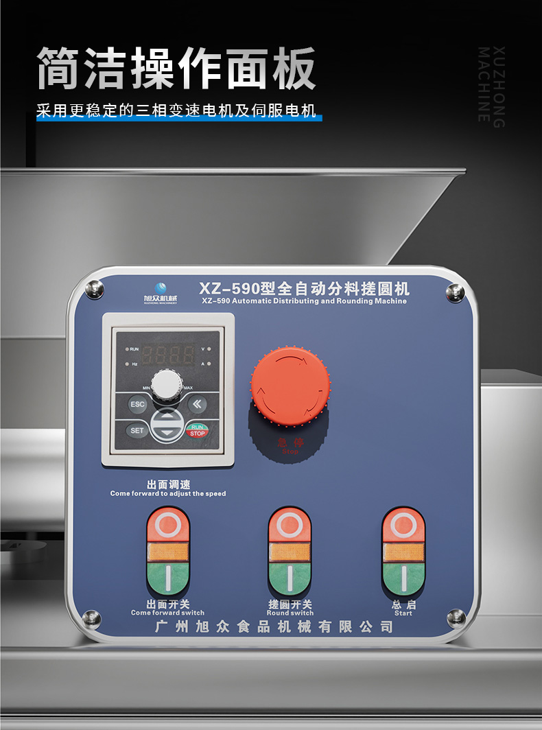 XZ-590搓圓機,商用搓圓機,專注細節匠心品質。功能多樣,小而美,面包、糍粑、分餡、分團。整機優質不銹鋼,采用優質201不銹鋼焊接完成。