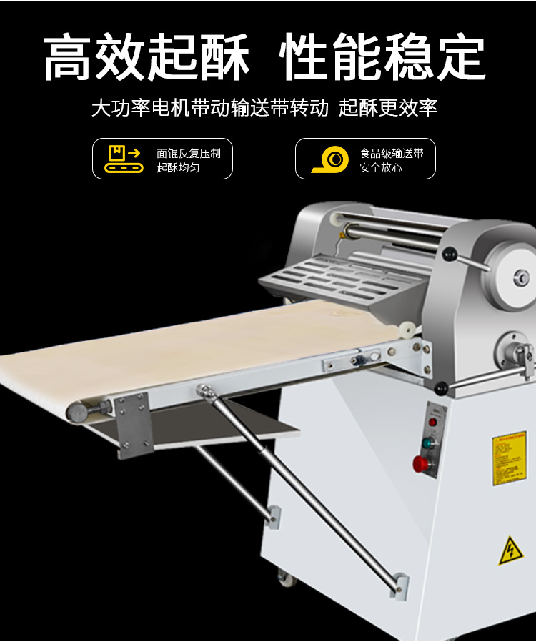 LSP-520酥皮機(jī),采用獨(dú)特的鏈輪傳動(dòng)替代了傳統(tǒng)易磨損的塑輪傳動(dòng),低噪音,高壽命滾輪經(jīng)過(guò)特殊工藝處理,不粘面,不易刮傷適用于手撕面包、羊角面包、蛋撻、老婆餅、千層餅,等酥皮類(lèi)食品,也可用于輾壓面團(tuán)。