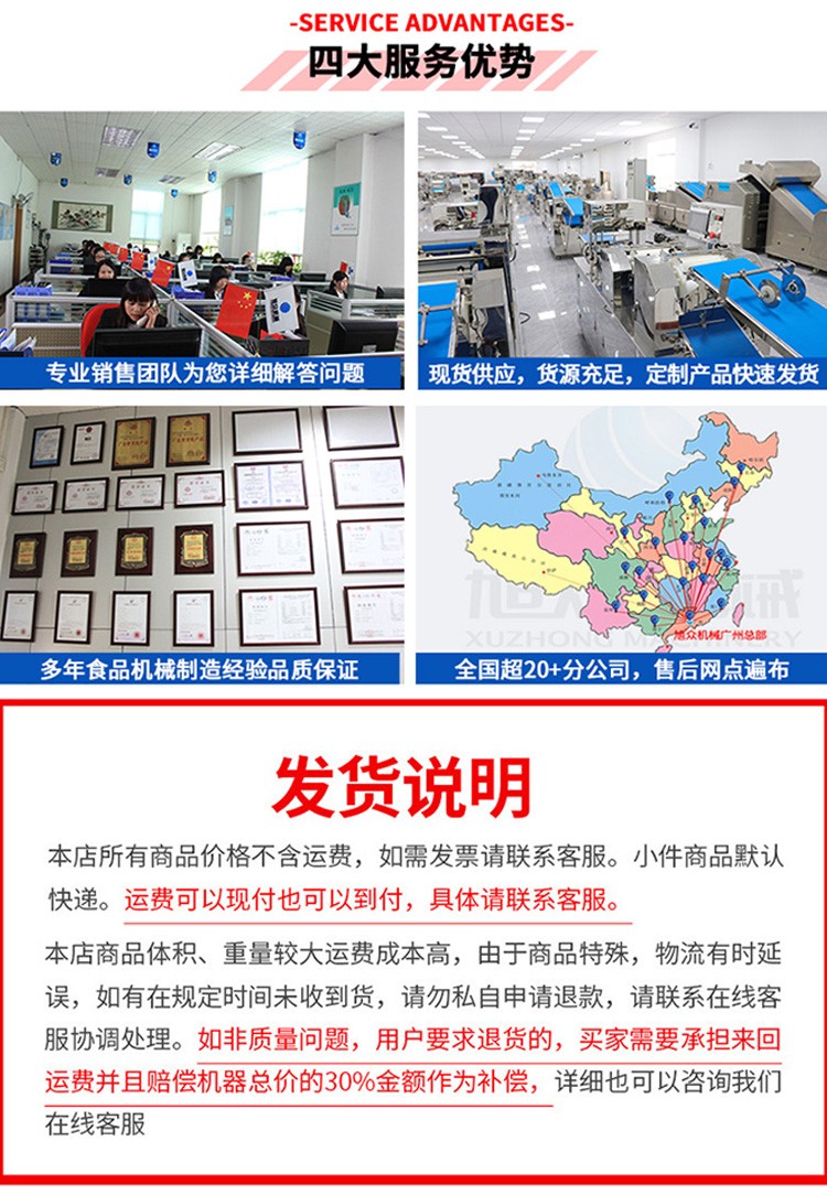 廣州旭眾食品機(jī)械有限公司是一家集科研開(kāi)發(fā),生產(chǎn)設(shè)計(jì),營(yíng)銷(xiāo)服務(wù)為一體的現(xiàn)代化生產(chǎn)企業(yè)。現(xiàn)代化生產(chǎn)車(chē)間,精湛制造技術(shù),所產(chǎn)機(jī)械歷經(jīng)市場(chǎng)重重考驗(yàn),不斷贏得海內(nèi)外客戶(hù)的贊譽(yù)。