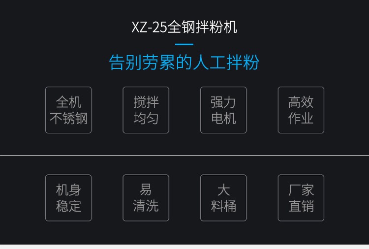全鋼拌粉機(jī),告別勞累的人工拌粉,360°高效旋轉(zhuǎn)攪拌、均勻。無論是拌粉還是拌面絮,自動拌粉、快速攪拌、攪拌均勻。