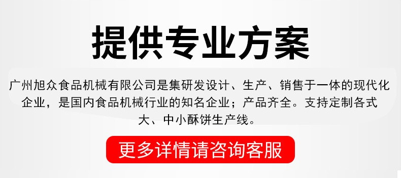 廣州旭眾食品機(jī)械有限公司是一家集科研開(kāi)發(fā),生產(chǎn)設(shè)計(jì),營(yíng)銷(xiāo)服務(wù)為一體的現(xiàn)代化生產(chǎn)企業(yè)?,F(xiàn)代化生產(chǎn)車(chē)間,精湛制造技術(shù),所產(chǎn)機(jī)械歷經(jīng)市場(chǎng)重重考驗(yàn),不斷贏得海內(nèi)外客戶(hù)的贊譽(yù)。