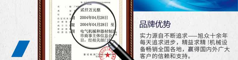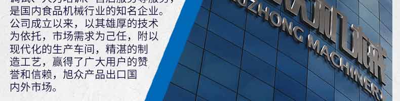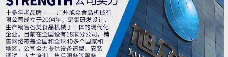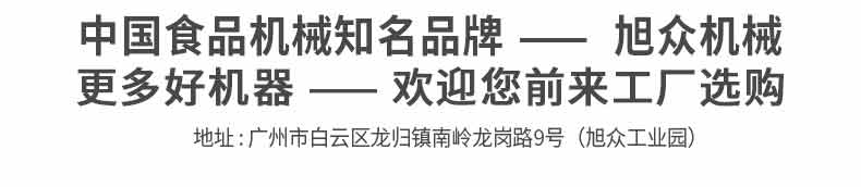 廣州旭眾食品機械有限公司是一家集科研開發(fā),生產(chǎn)設計,營銷服務為一體的現(xiàn)代化生產(chǎn)企業(yè)。現(xiàn)代化生產(chǎn)車間,精湛制造技術,所產(chǎn)機械歷經(jīng)市場重重考驗,不斷贏得海內(nèi)外客戶的贊譽。