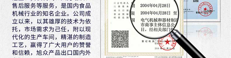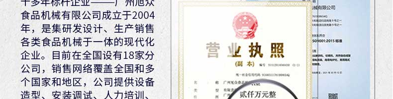 廣州旭眾食品機械有限公司是一家集科研開發,生產設計,營銷服務為一體的現代化生產企業。現代化生產車間,精湛制造技術,所產機械歷經市場重重考驗,不斷贏得海內外客戶的贊譽。