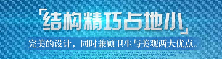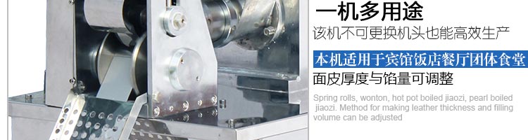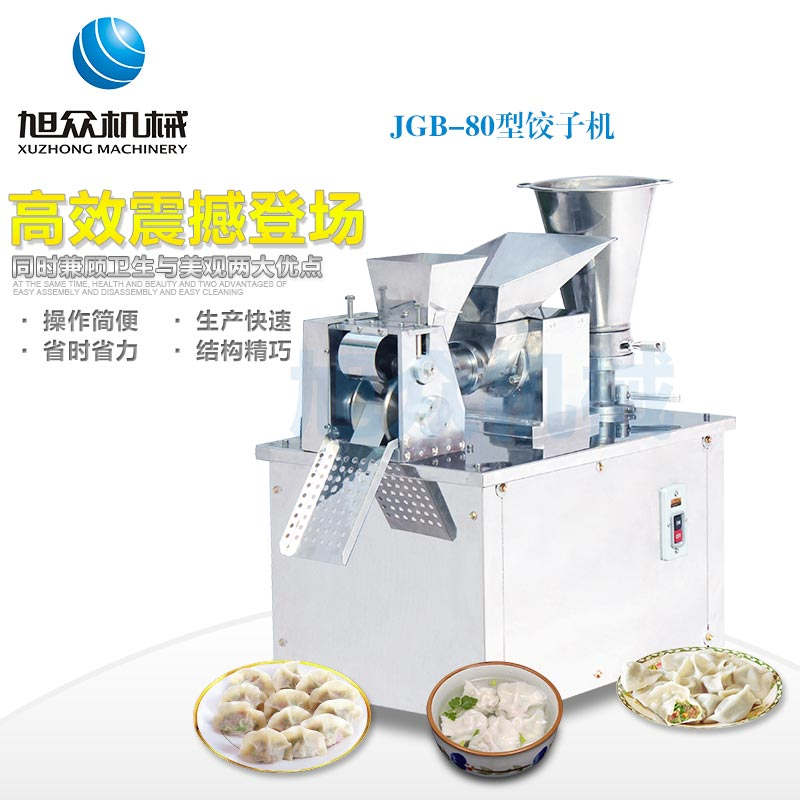 JGB-80型號餃子機,本機是一款可生產(chǎn)各種肉餡、肉菜混合餡、全菜餡及其他種餡餃子的設(shè)備。包制出來的餃子可蒸、煮、炸、煎等多種調(diào)理。適用于賓館、飯店、餐廳、團體食堂加工,幼兒園、速凍餃子生產(chǎn)。
