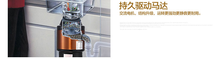 ACLQ56-廚房垃圾處理器,該機(jī)器是靠?jī)?nèi)部結(jié)構(gòu)、零件組合達(dá)到處理垃圾的效果,通過(guò)碾、壓、擠、磨等系統(tǒng)的處理,在十幾秒內(nèi)安全將食物垃圾處理成小于3毫米的顆粒,隨著水流排入下水道,使用十分安全。