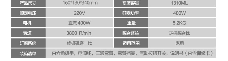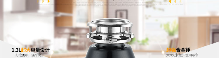 名稱DCLQ40-廚房垃圾處理器 電源220V 功率0.4kw 產量 尺寸 重量5.2kg 規格 其他轉速3000R/min,研磨倉容量1310ML