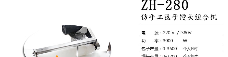 ZH-280型仿人工卷面式包子機饅頭機,可生產各種包子,如豆沙包、小籠包、肉包、菜包、南瓜餅、小籠包、刀切饅頭、花卷等各種包餡食品。適用于個體戶、速凍食品廠、學校等各種工作場所。可滿足不同客戶群體。免費提供工藝技術。免費上門培訓指導安裝。