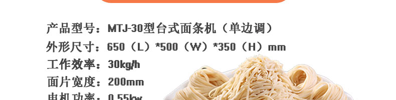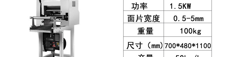 名稱30型全自動壓面面條機 電源220v 功率0.55kw 產量30kg/h 尺寸650*500*350mm 重量45kg 規格 其他