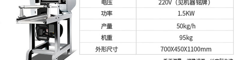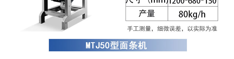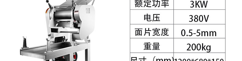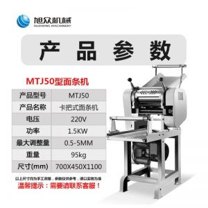 名稱50型全自動壓面面條機 電源220v 功率1.5kw 產量50kg/h 尺寸700*450*1100mm 重量95kg 規格 其他