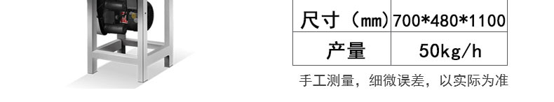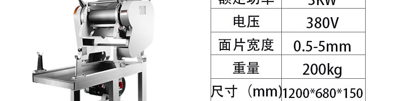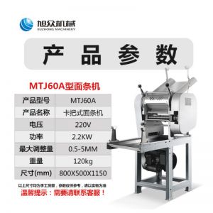 名稱(chēng)60型全自動(dòng)壓面面條機(jī) 電源220v 功率2.2kw 產(chǎn)量60kg/h 尺寸800*500*1150mm 重量120kg 規(guī)格 其他