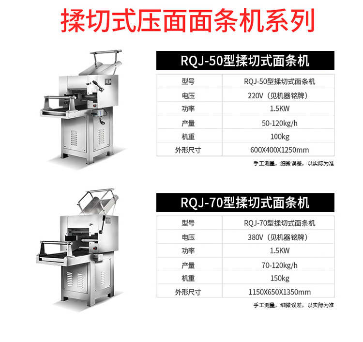名稱MTJ-50型卡把式面條機 電源各款型號有所不同,請聯系聯系員 功率各款型號有所不同,請聯系聯系員 產量 尺寸各款型號有所不同,請聯系聯系員 重量各款型號有所不同,請聯系聯系員 規格 其他