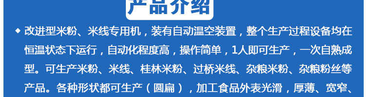 SZ-30不銹鋼米粉機,可生產米粉、米線、桂林米粉、過橋米線、年糕、糍粑等產品。各種形狀都可生產(圓、扁),加工食品外表光滑,厚薄、寬窄、粗細均勻可調,筋軟適度,有彈性,口感柔軟、味道純正。
