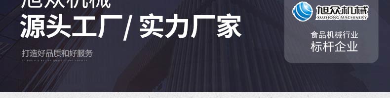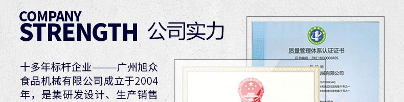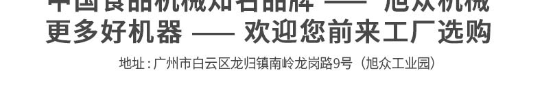 廣州旭眾食品機械有限公司是一家集科研開發,生產設計,營銷服務為一體的現代化生產企業。現代化生產車間,精湛制造技術,所產機械歷經市場重重考驗,不斷贏得海內外客戶的贊譽。
