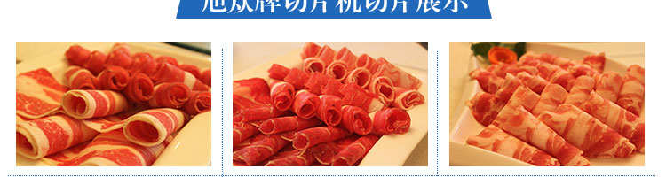 SA-350H 全自動落地式切片機,適合切無骨肉類和其他類似榨菜帶有彈性的食物,把原材料肉切成肉片,并可自動成卷狀。可切牛肉片、羊肉片等