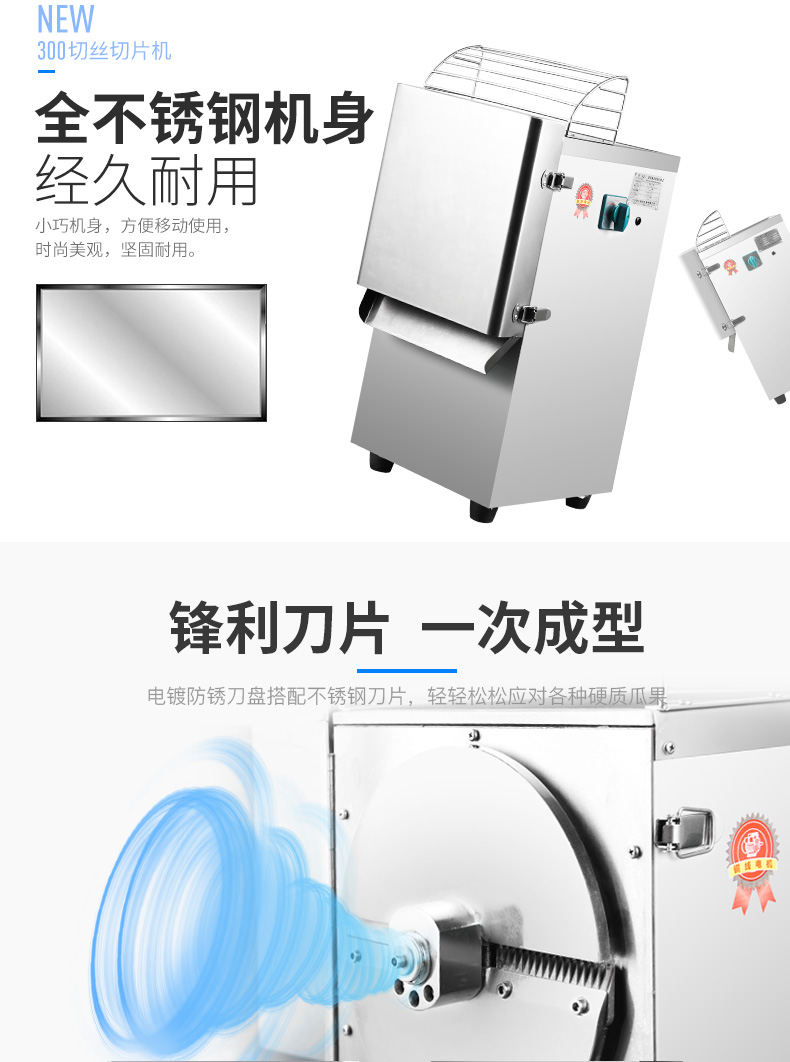 300型瓜果切絲切片機,高效便捷、一次成型、每小時可切200-300KG。全不銹鋼機身經(jīng)久耐用小巧機身,方便移動使用,時尚美觀,堅固耐用。鋒利刀片、一次成型。電鍍防銹刀盤搭配不銹鋼刀片,輕輕松松應(yīng)對各種硬質(zhì)瓜果。