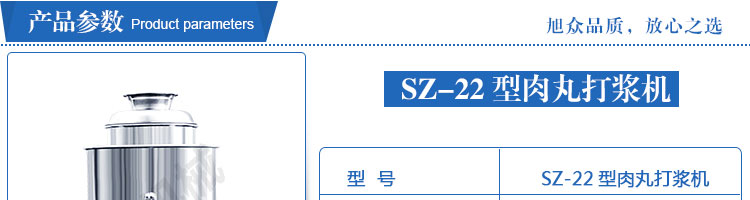SZ-22型肉丸打漿機,本機裝肉用桶子采用不銹鋼制造,達到衛生要求,肉桶外罩和桶底裝有冷卻裝置,確保肉漿新鮮。比手工的打漿更精細,所產肉丸、魚丸彈性好,色澤潔白。