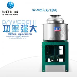 SZ-28型高速肉丸打漿機,高速肉丸打漿機選用不銹鋼,生產過程中改善了肉質脂肪纖維,生產出的丸子外表光滑細膩、低脂、口感爽脆、彈性好、韌性好,是潮州肉丸的專用打漿機。