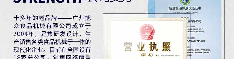 廣州旭眾食品機械有限公司是一家集科研開發(fā),生產(chǎn)設(shè)計,營銷服務(wù)為一體的現(xiàn)代化生產(chǎn)企業(yè)。現(xiàn)代化生產(chǎn)車間,精湛制造技術(shù),所產(chǎn)機械歷經(jīng)市場重重考驗,不斷贏得海內(nèi)外客戶的贊譽。