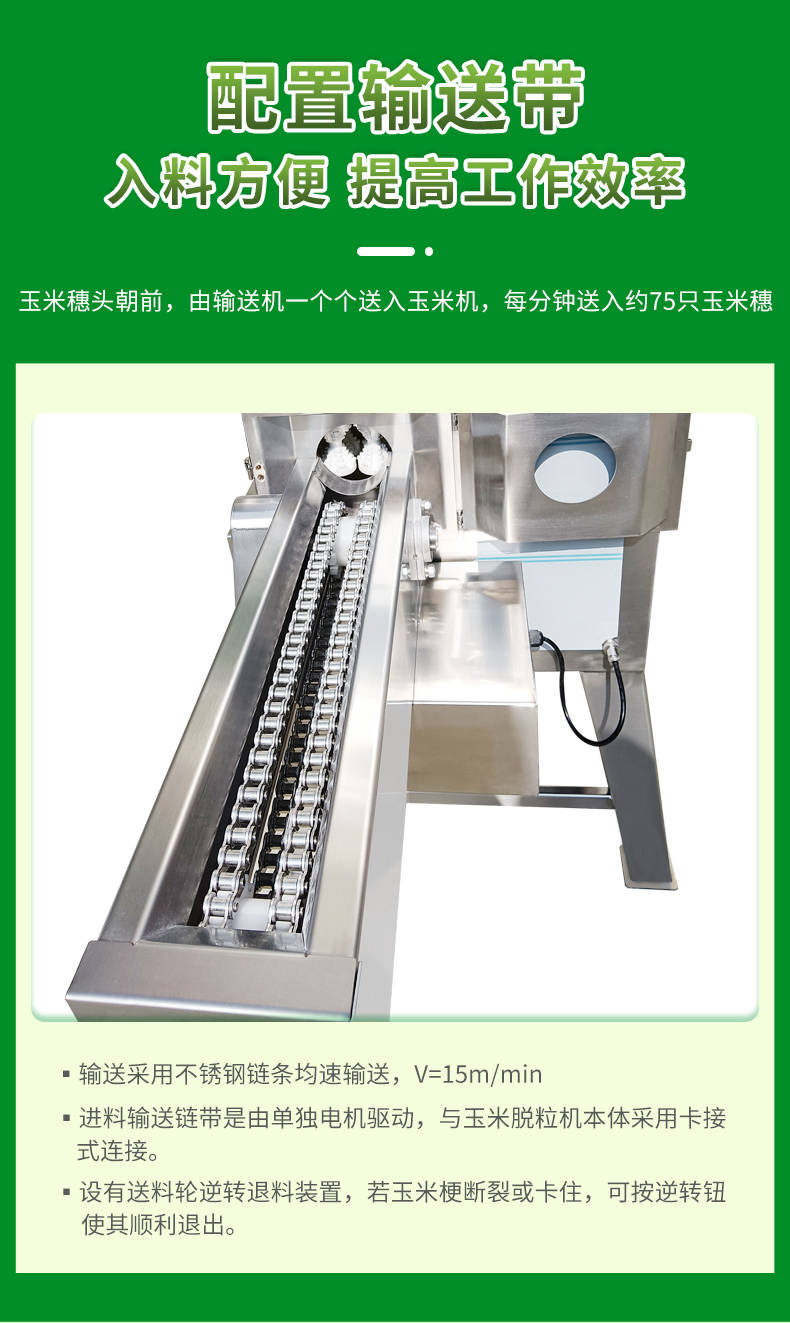 XZ-T138玉米脫粒機,鮮玉米脫粒機,高效脫粒。用于新鮮甜糯玉米脫粒工作,能很方便地把籽粒與梗桿分離。入料方便、脫凈率高、不碎粒不爛芯。每分鐘處理75個玉米穗。高效脫粒,滿足商用,籽粒產量約為500-600Kg/h