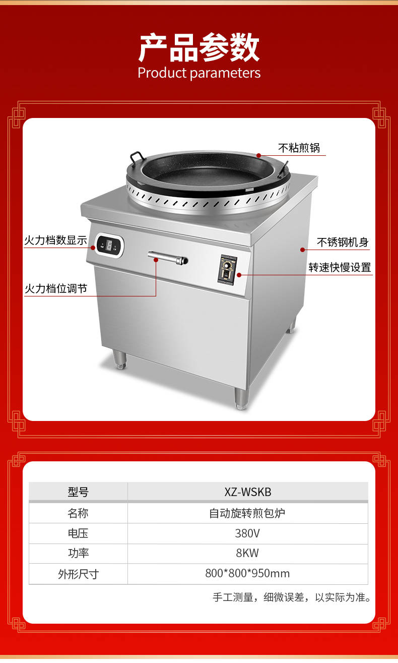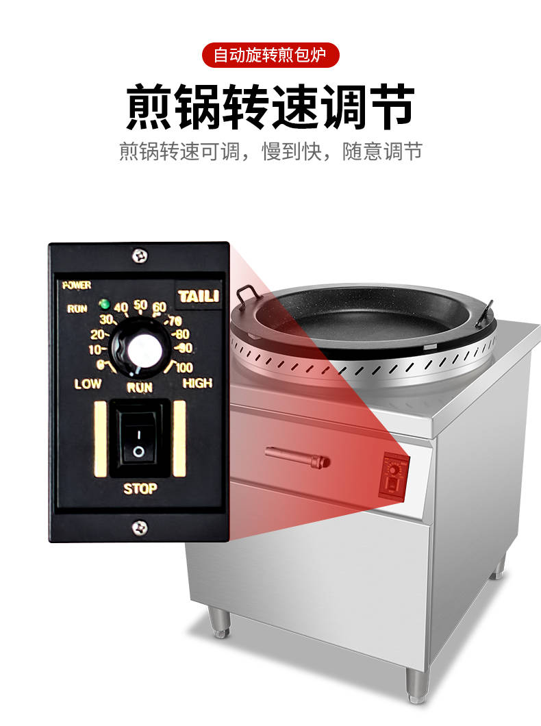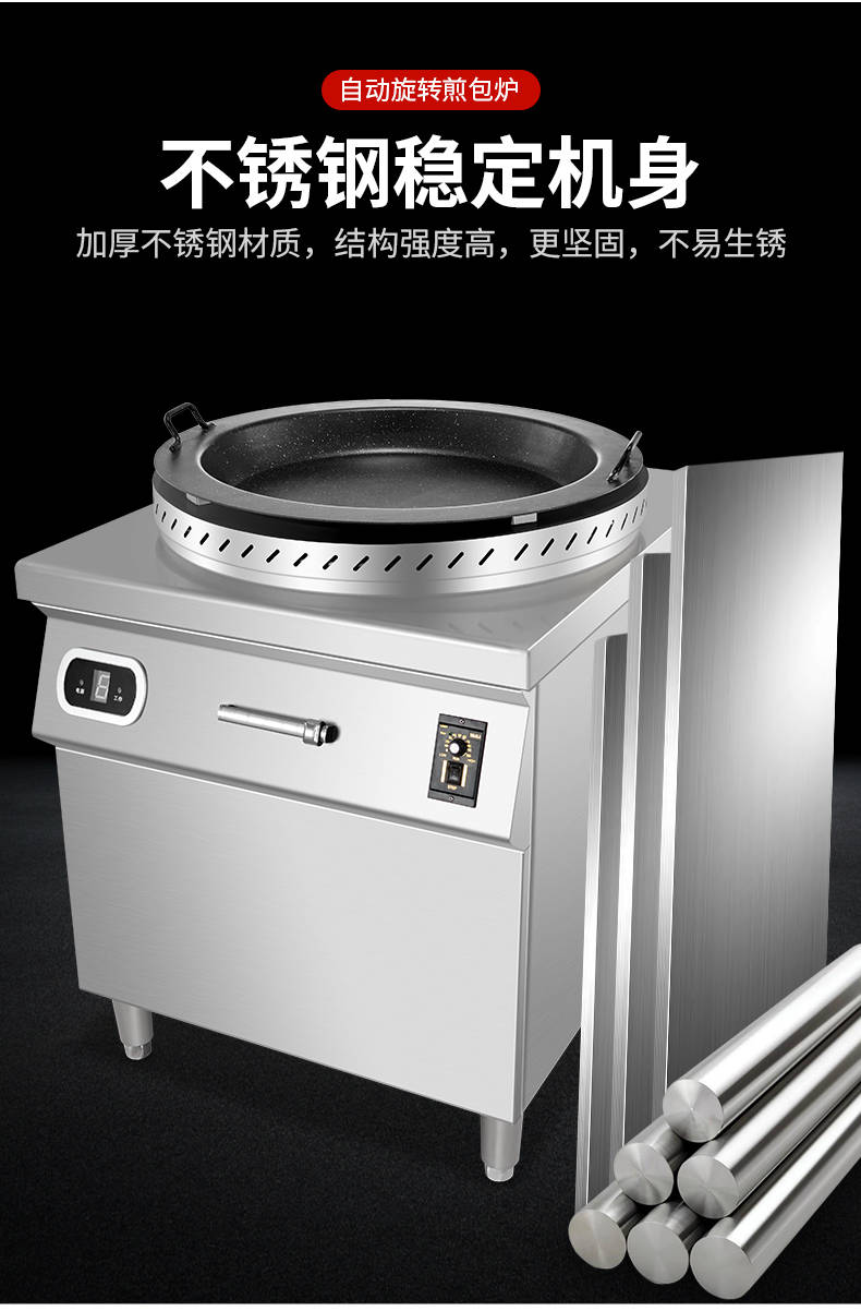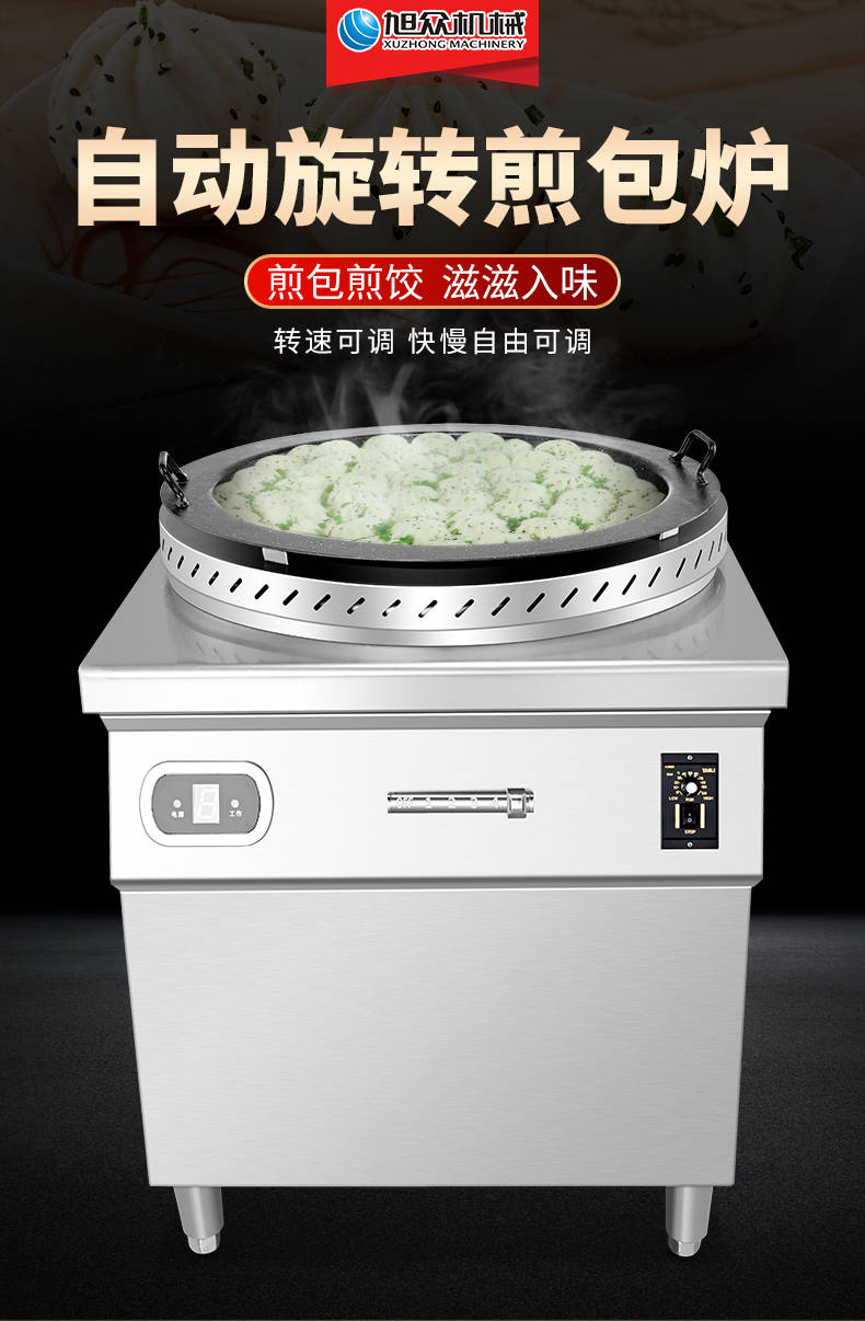 XZ-WSKB自動旋轉煎包爐,煎制各種美食鍋在手,各種煎包煎餃煎美食,輕松搞定。自動旋轉、受熱均勻煎鍋360°旋轉煎美食,省時省力,不焦不糊,高效率轉速可調快慢自由可調。