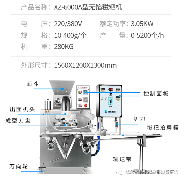 旭眾新款定做糍粑機,是一款生產香甜無餡糍粑的設備;設備入料斗容量大,采用雙絞龍送料、變頻無極調速。產品大小、出皮厚度調節自如、使用方便、精確度高,出皮均勻、暢通、產品一次成型,所出產品外形大小統一,遠比手工制作美觀、便捷。