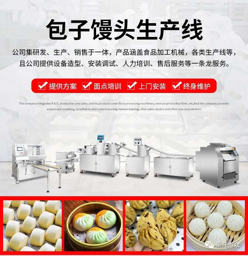 智能包子饅頭生產線,功能多樣,通過不同機型的組合,可以實現制作帶褶的包子、饅頭;光滑的包子、饅頭和方形饅頭或者做多彩包子饅頭等。