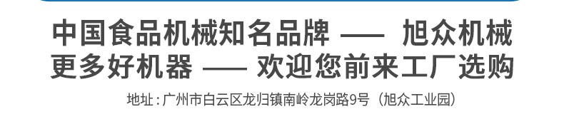 廣州旭眾食品機械有限公司是一家集科研開發,生產設計,營銷服務為一體的現代化生產企業。現代化生產車間,精湛制造技術,所產機械歷經市場重重考驗,不斷贏得海內外客戶的贊譽。