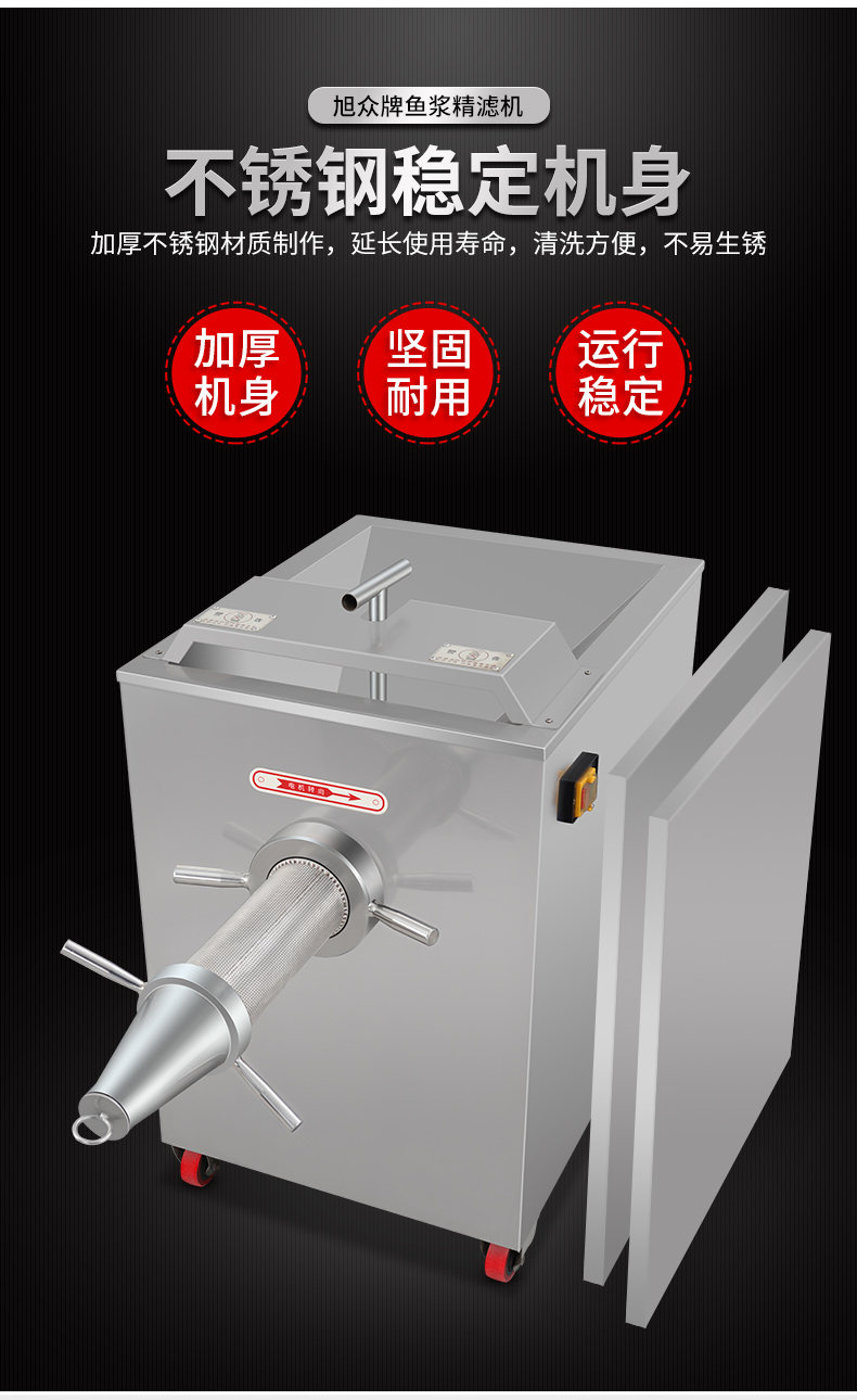 SZJ-300魚漿精濾機,商用創(chuàng)業(yè)魚漿精濾機,用于配套魚肉采肉機進行魚肉過濾雜質(zhì)。節(jié)省人工開支,人工加工魚漿,效率慢剔除魚細(xì)骨,不干凈,有了魚漿精濾機,一人就可以很快制作多種魚漿。