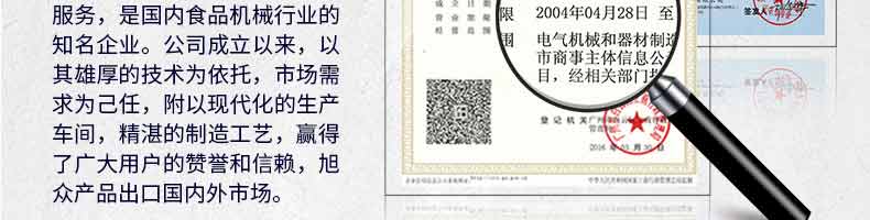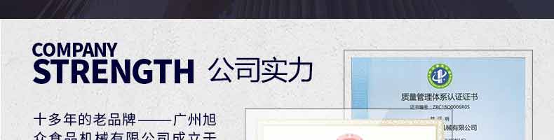 廣州旭眾食品機(jī)械有限公司是一家集科研開發(fā),生產(chǎn)設(shè)計(jì),營(yíng)銷服務(wù)為一體的現(xiàn)代化生產(chǎn)企業(yè)。現(xiàn)代化生產(chǎn)車間,精湛制造技術(shù),所產(chǎn)機(jī)械歷經(jīng)市場(chǎng)重重考驗(yàn),不斷贏得海內(nèi)外客戶的贊譽(yù)。